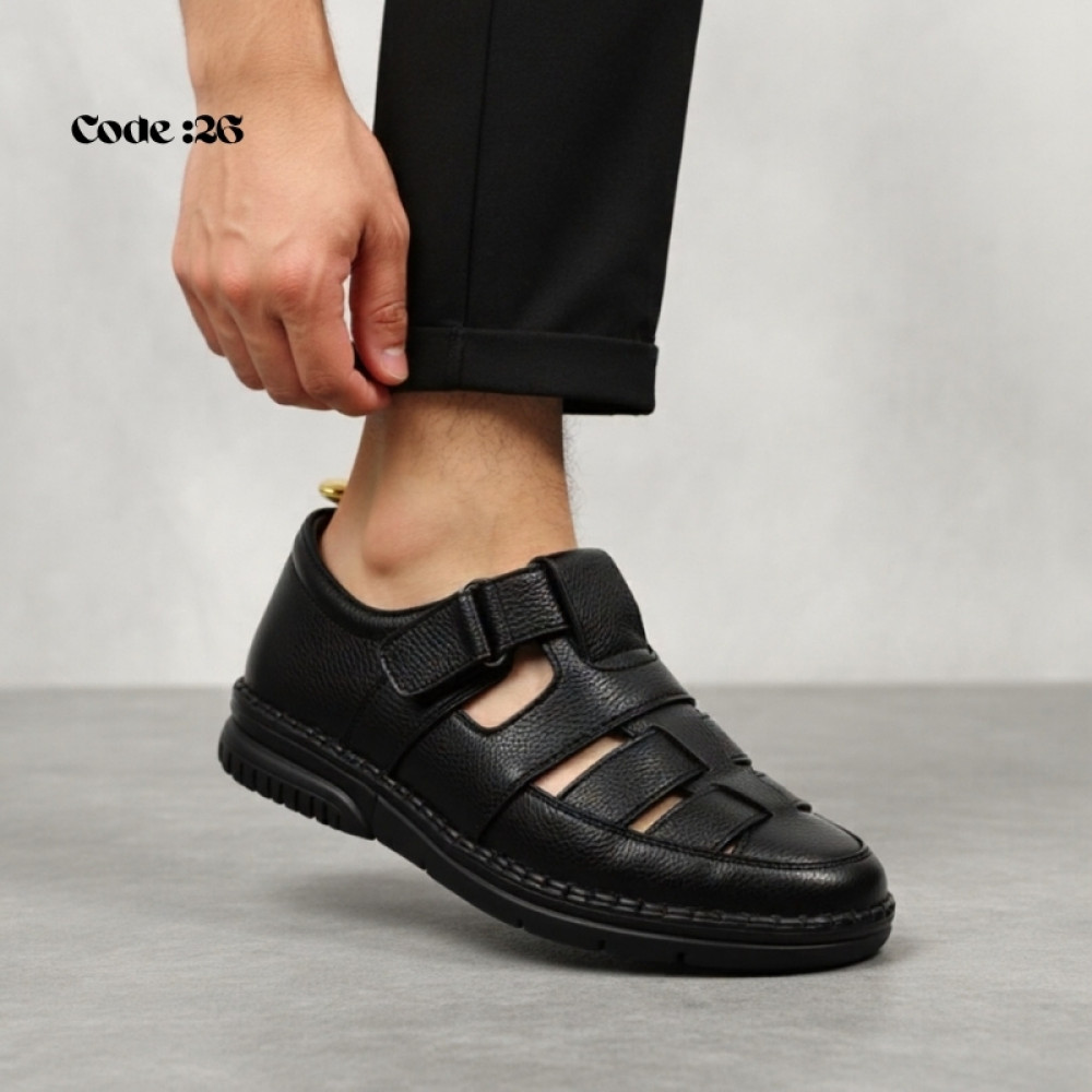 Code:26 Original Leather Sacchi Shoes for Man's (Black)