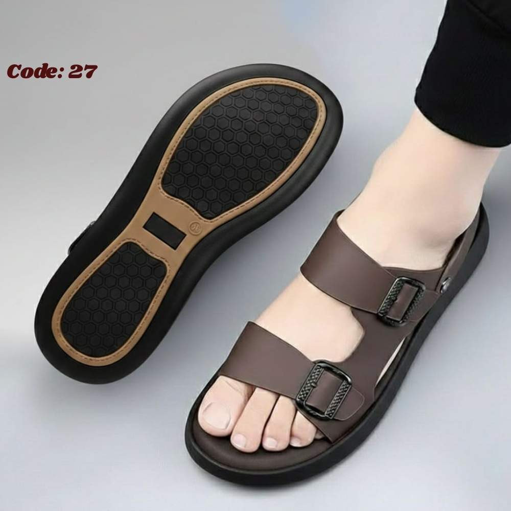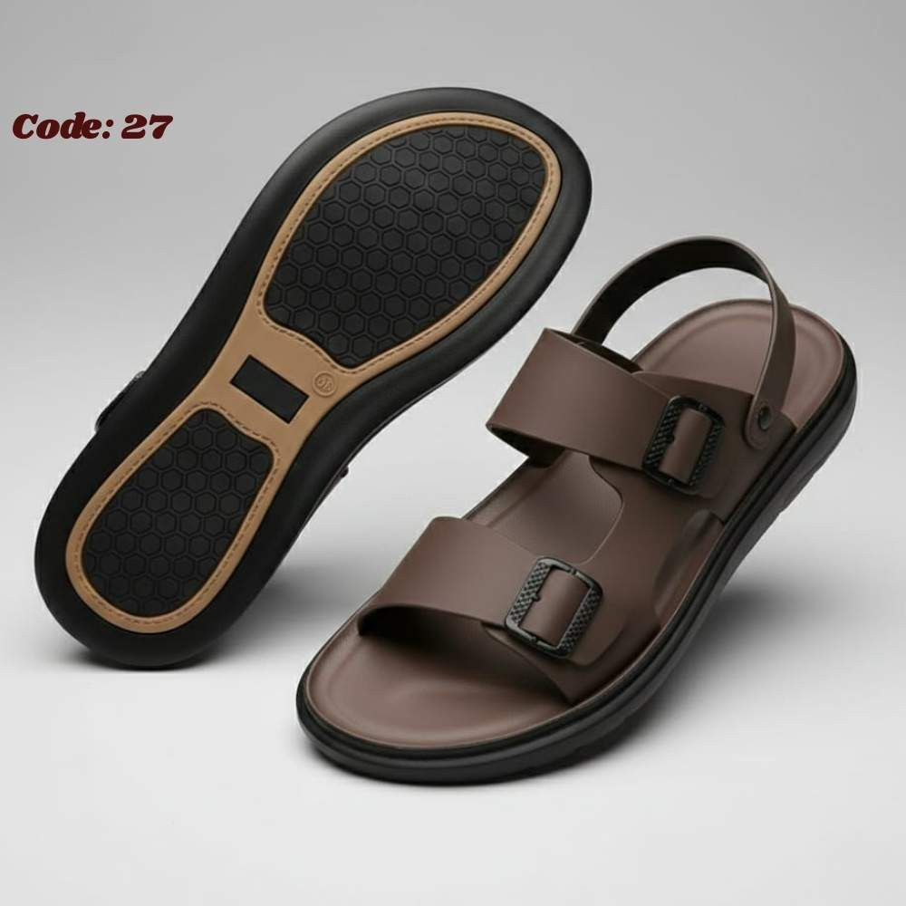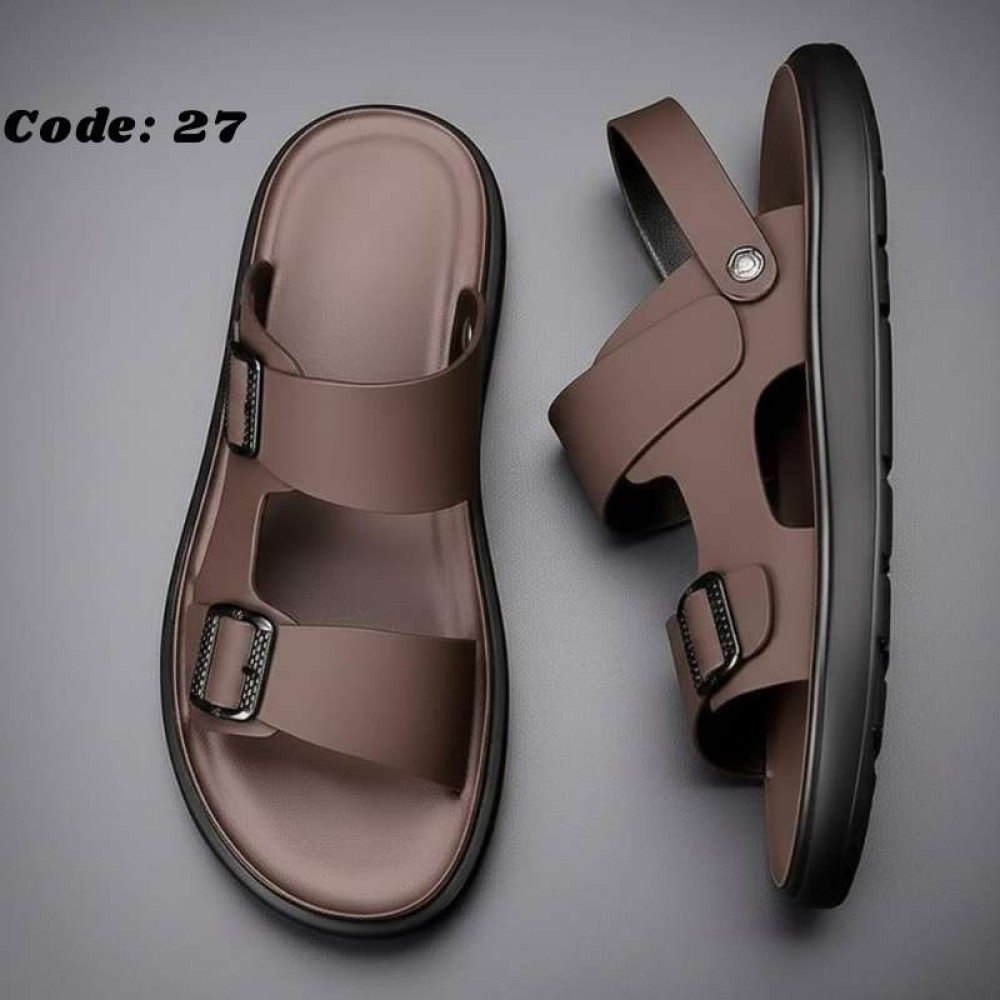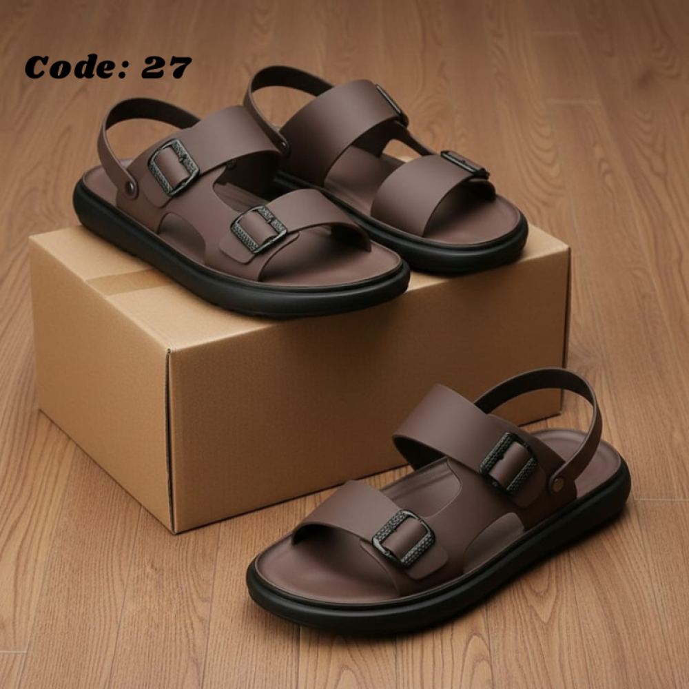 Code:27 Men's CREPE Sole Leather Sandal Dark Brown.